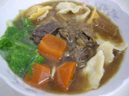 三、燙個青菜加在裡面,就是一碗香噴噴又滋補強身的美味原汁牛肉湯囉(加了牛筋的更頂級呢!)~