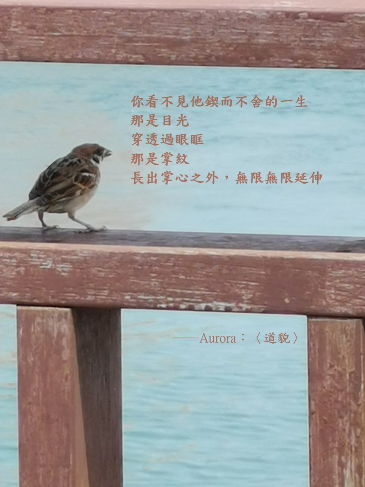 灰白頭髮,不能反映五十年的風霜 黑眼珠,不能重現 昔時所目睹的所有幽暗處 同樣的 走過的路,並沒有盡顯於足 背負過的全部 並沒有累疊在三十一塊脊梁骨 猶如雙手 捕捉著 所失;所得 捉影;捕風 一方離缺滾落鏡子中 以一面之詞 重組它 萬籟俱寂的完整 說不完的故事 都寫在此身,成為無字天書 攬鏡自照,只描摹出我 隱於形體的那一刻 你看不見他鍥而不舍的一生 那是目光 穿透過眼眶 那是掌紋 長出掌心之外,無限無限延伸